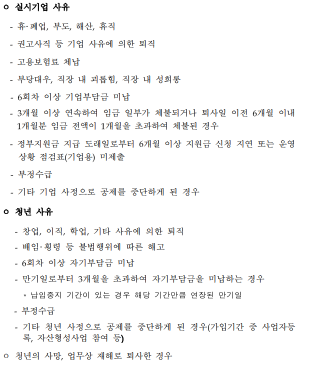 중도해지사유는 크게 기업이 변동했느냐, 청년의 상황이 변했느냐에 따라 다르다.